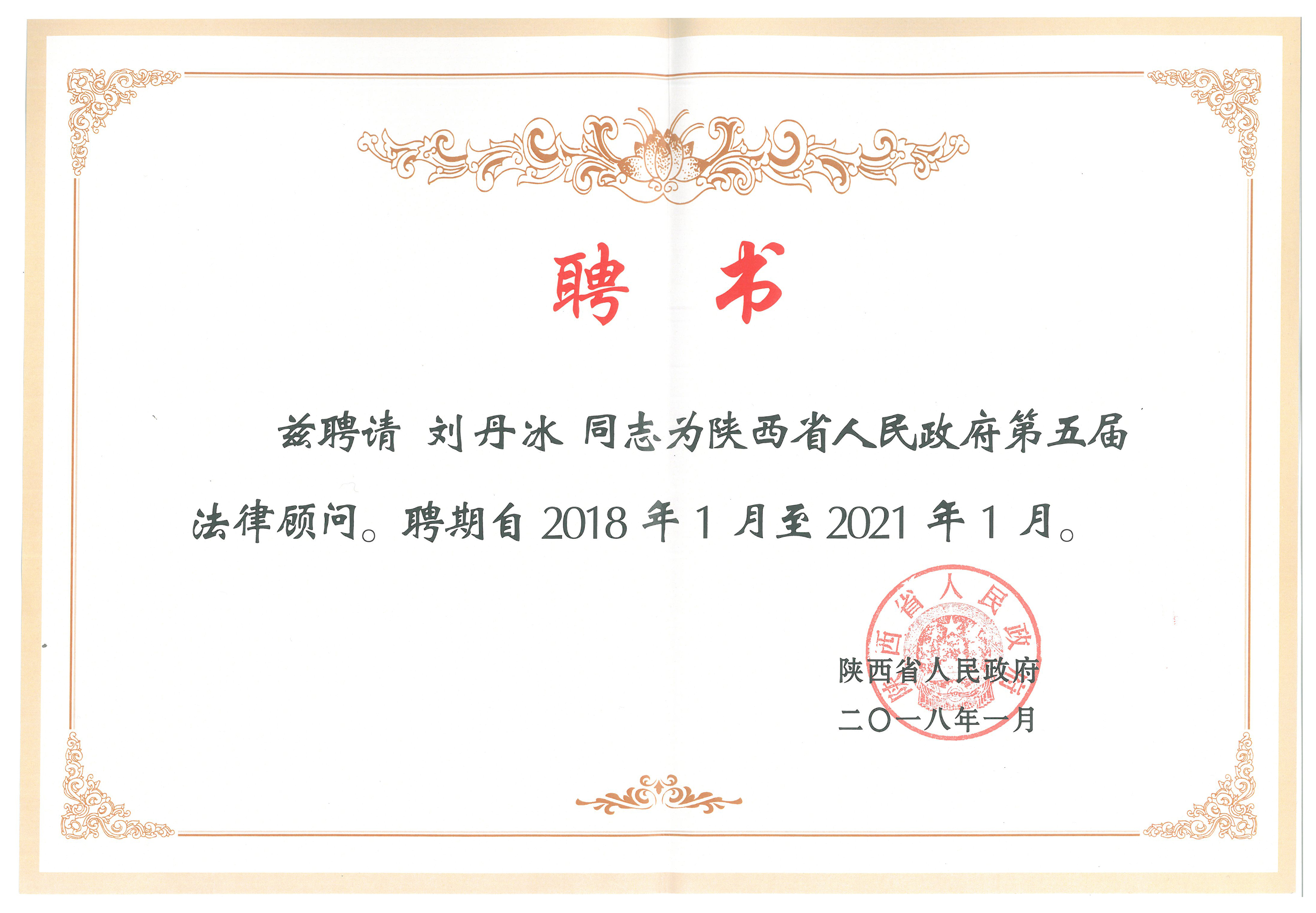 为完善和推行政府法律顾问制度,大力弘扬法治精神,及时反映人民群众诉求,推动法治政府建设迈上新的台阶。陕西省于3月22日举办第五届省政府法律顾问组聘任仪式,省长刘国中颁发聘书并讲话,常务副省长梁桂主持。我院刘丹冰教授与88级校友王浩公受聘为陕西省人民政府第五届法律顾问。