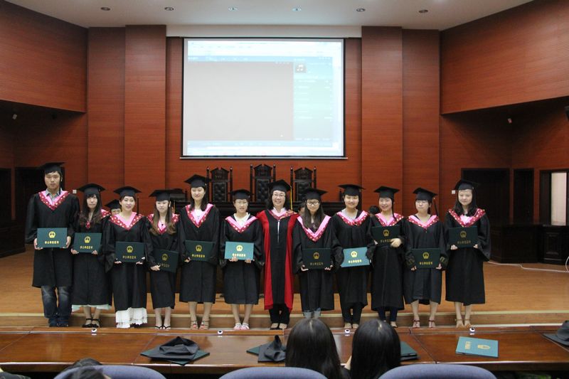 典礼在庄严的国歌中开始。首先由郑辉副教授宣读学位授予决定。随后院长刘丹冰教授为每一位学子拨穗正冠,并颁发学位证书。