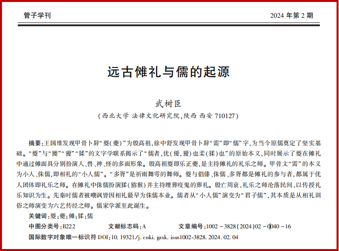 法律文化研究院院长、特聘教授武树臣先生撰写的论文《儒者柔也